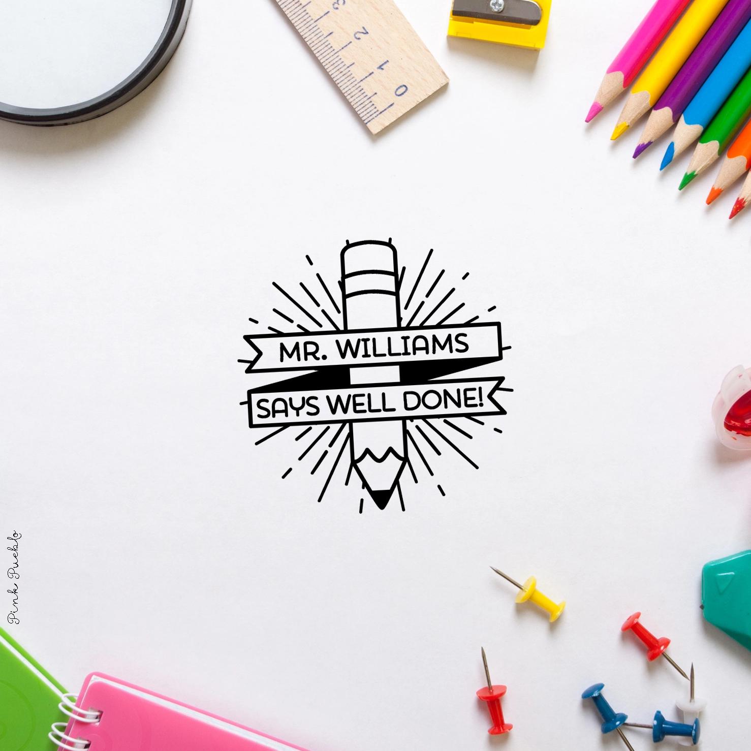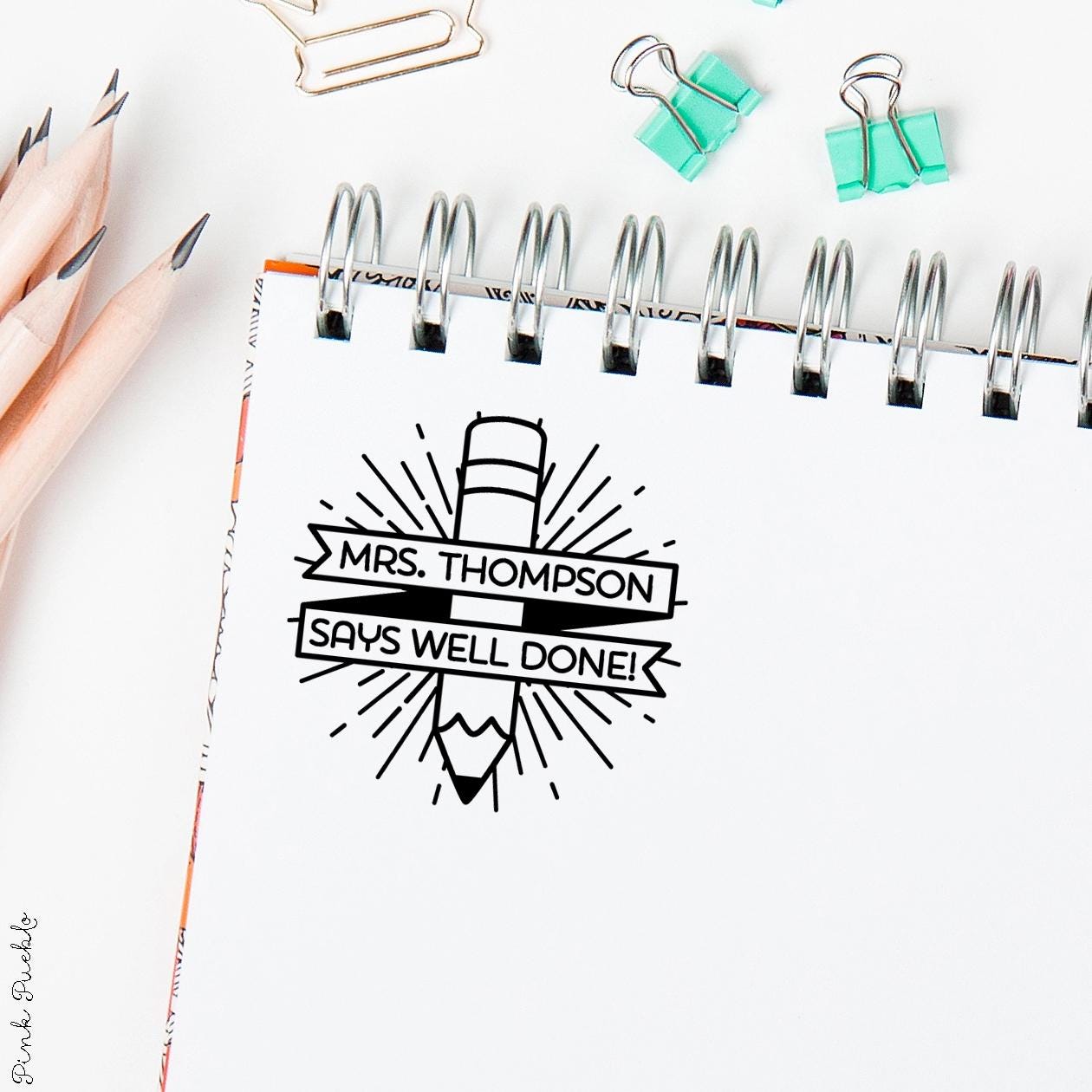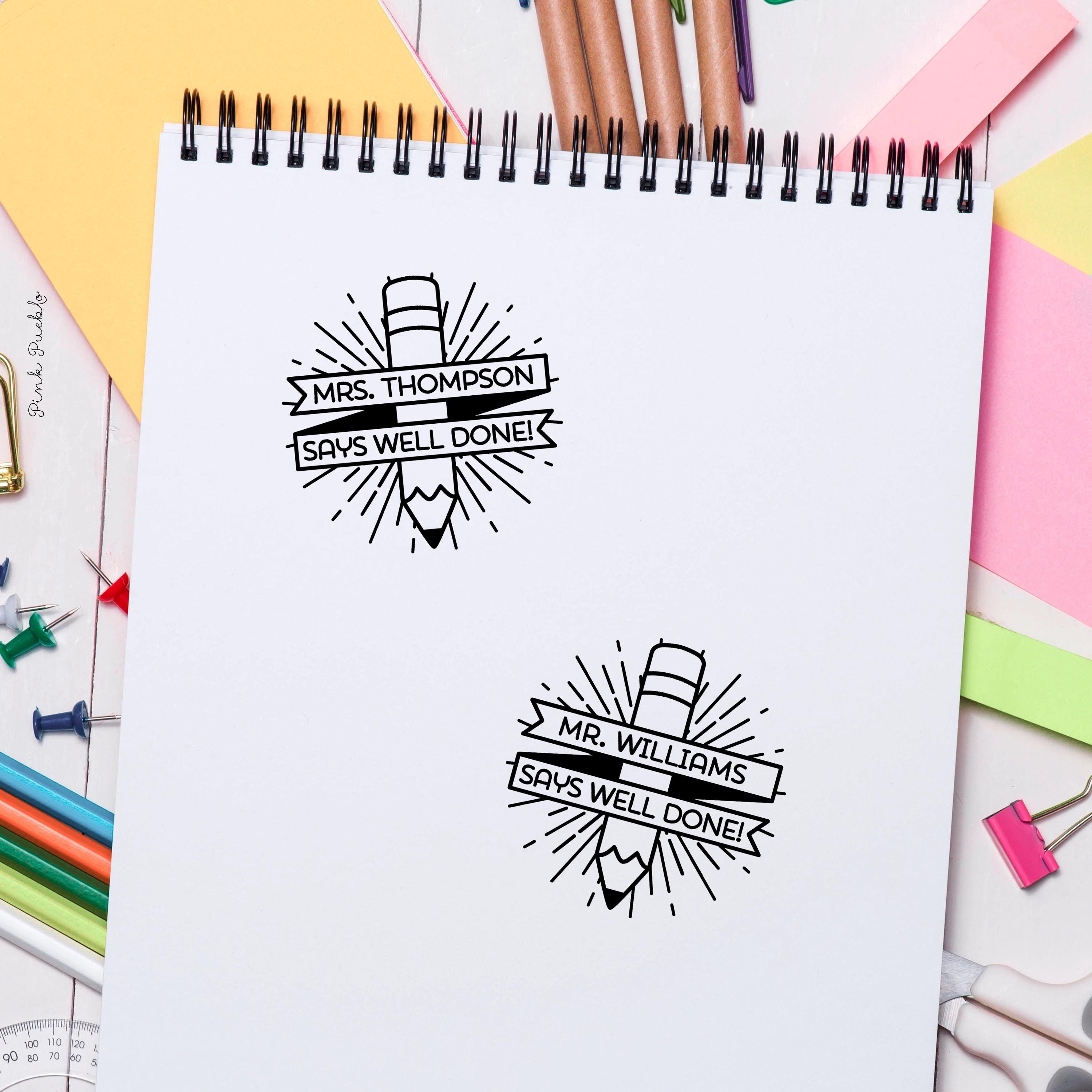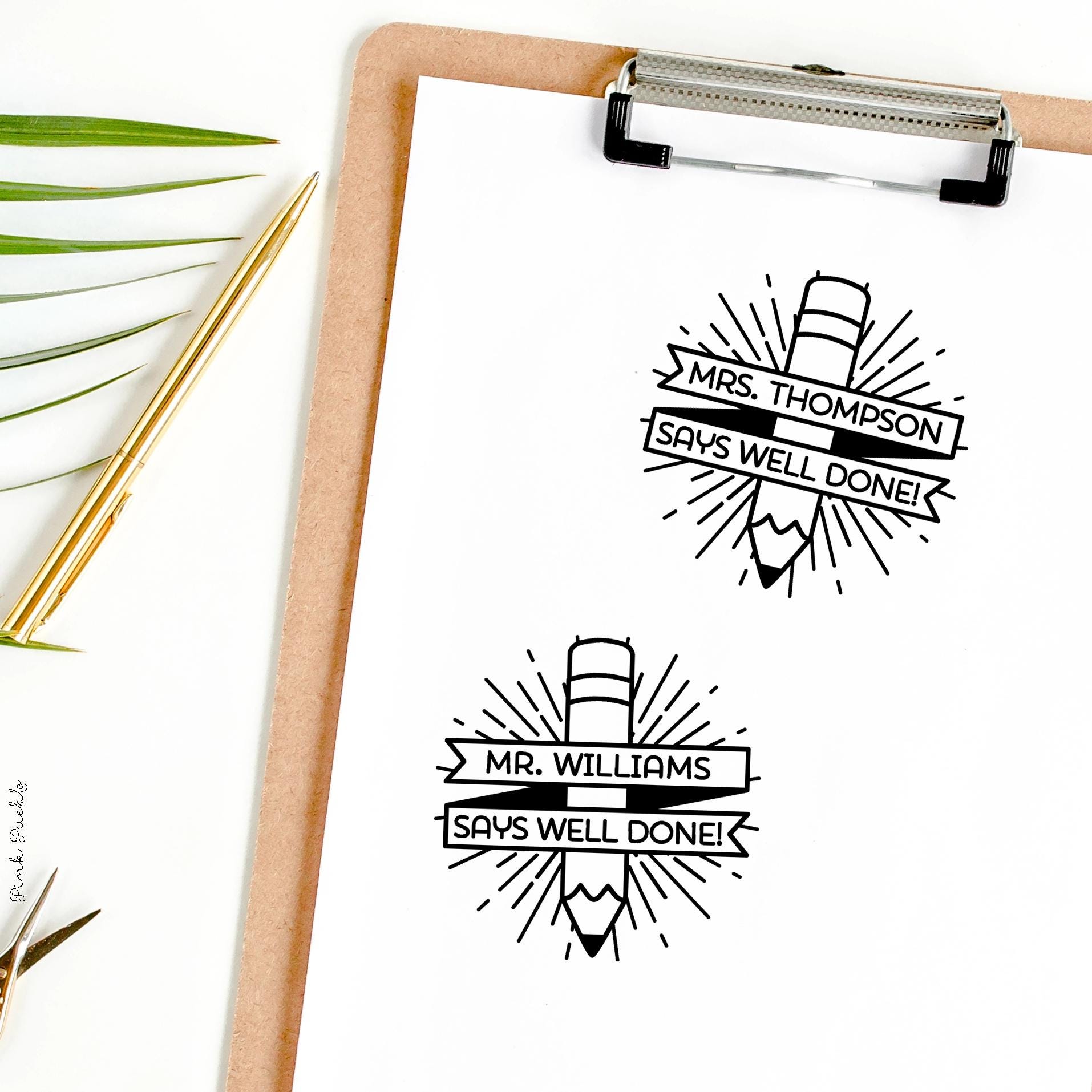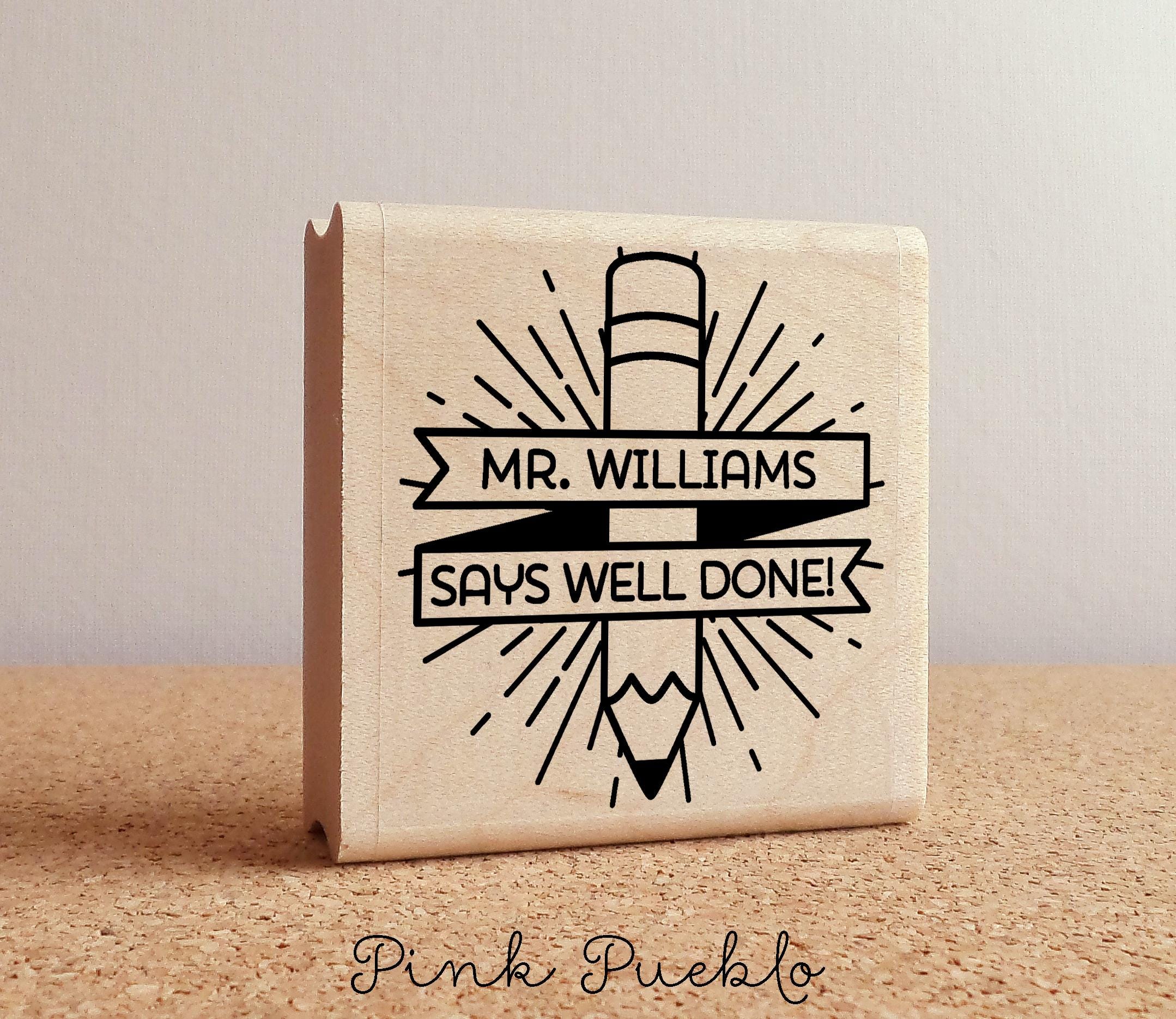 Make grading faster and more fun with this personalized teacher stamp! Perfect for teacher gifts, classroom decor, and teacher appreciation, this custom grading stamp is a thoughtful and practical way to add a personal touch to student feedback. Ideal for back to school, Christmas gifts, or any special occasion, this teacher stamp is a must-have for every educator. The stamp art is original art by Devon (that's me!) at the studio of Pink Pueblo. All stamps are hand made and hand packaged in my studio prior to shipment.