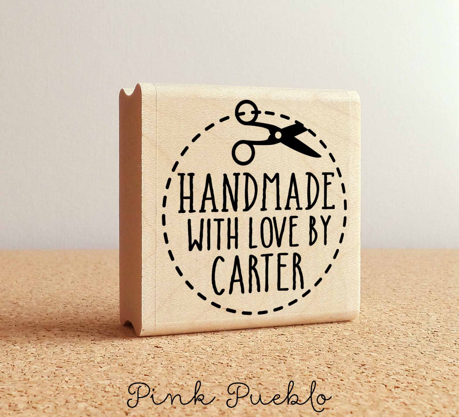 Label your handmade items, packaging and crafts with Pink Pueblo's personalized Handmade with Love rubber stamp! The stamp art is original art by Devon (that's me!) at the studio of Pink Pueblo. All stamps are hand made and hand packaged in my studio prior to shipment.