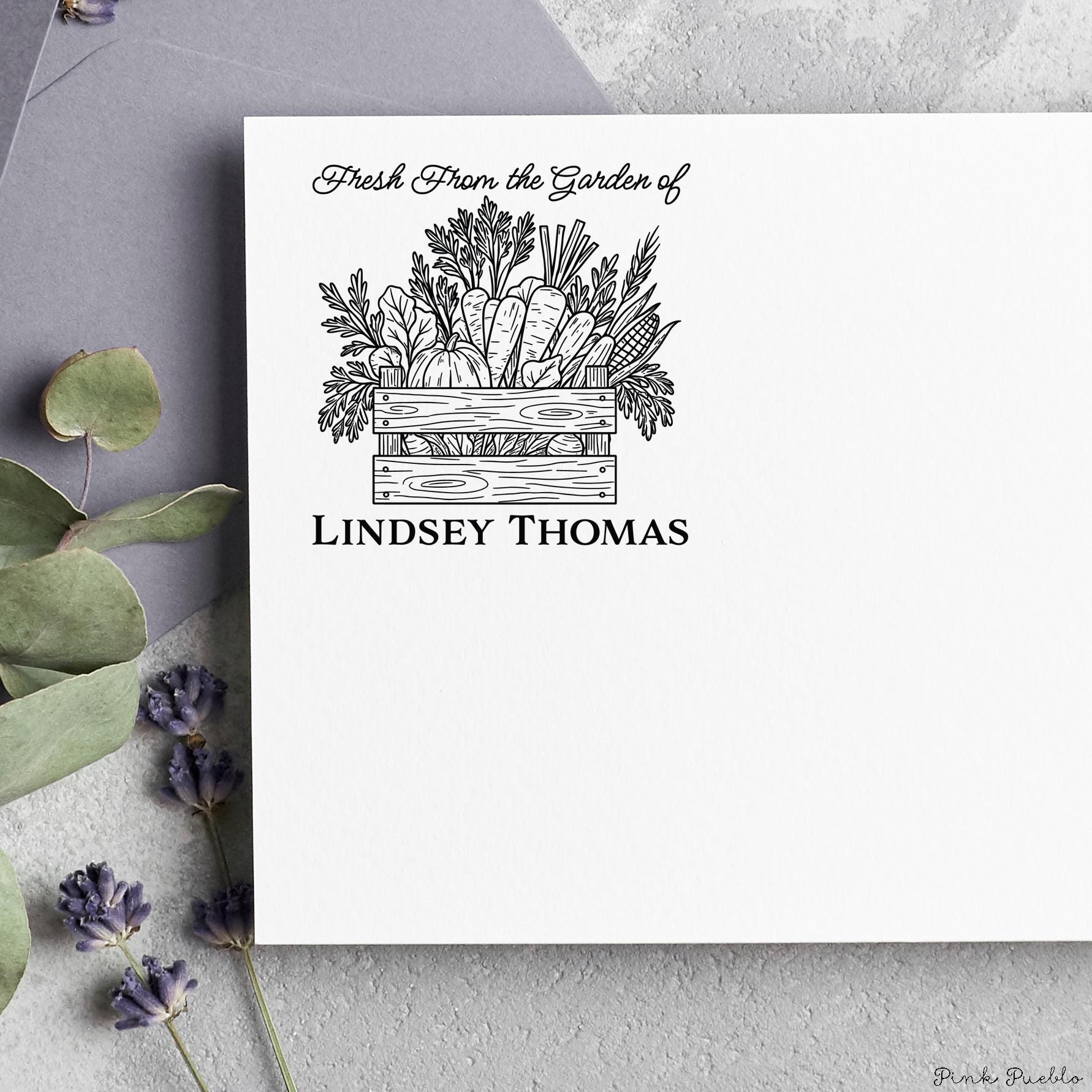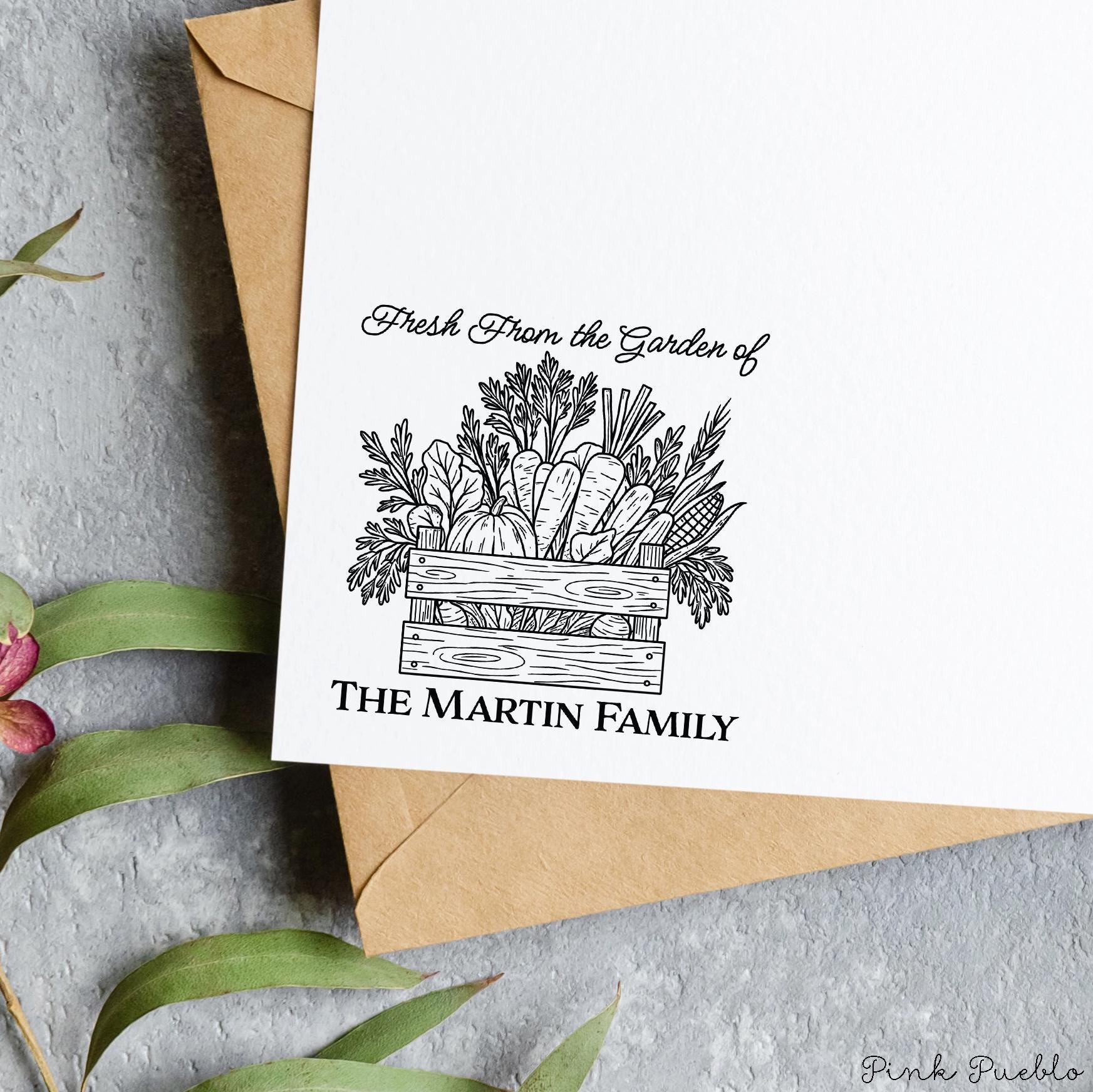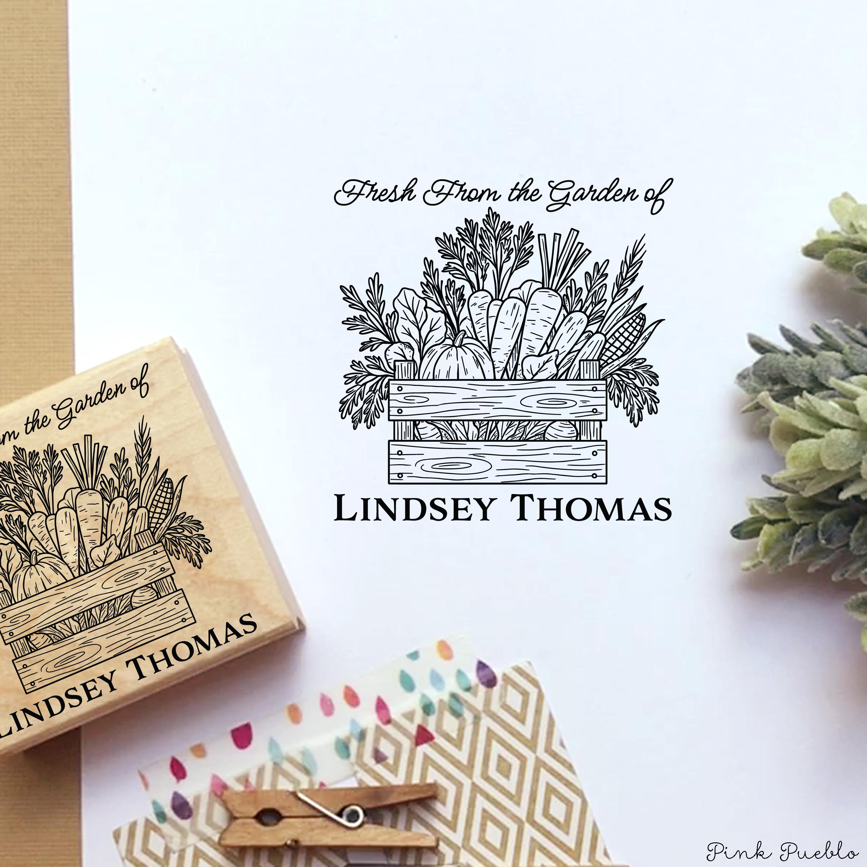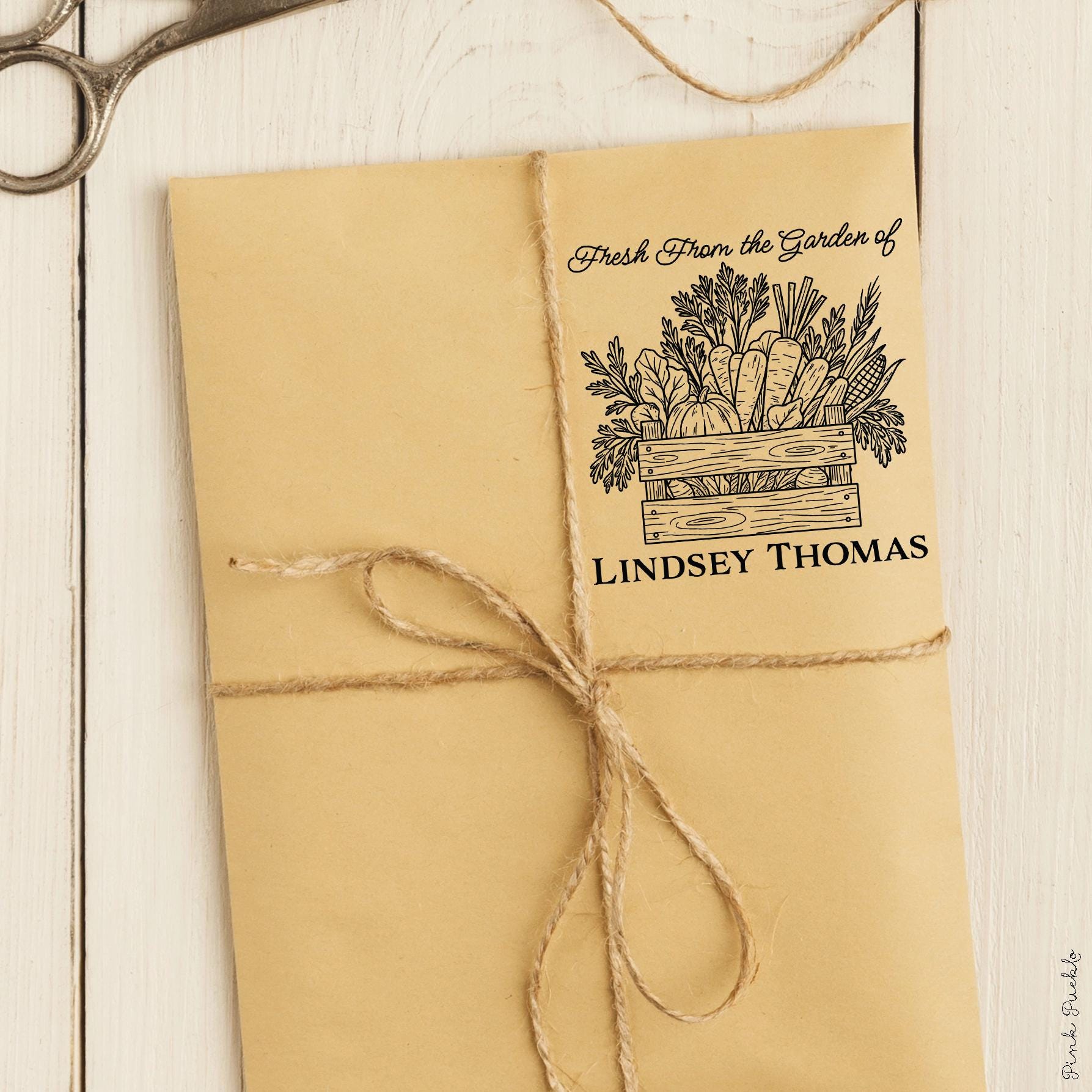 Label your fresh produce, canning jars and product packaging Pink Pueblo's From The Garden Of stamp! These area also wonderful personalized gifts for gardeners and gardening enthusiasts. The stamp art is original art by Devon (that's me!) at the studio of Pink Pueblo. All stamps are hand made and hand packaged in my studio prior to shipment.