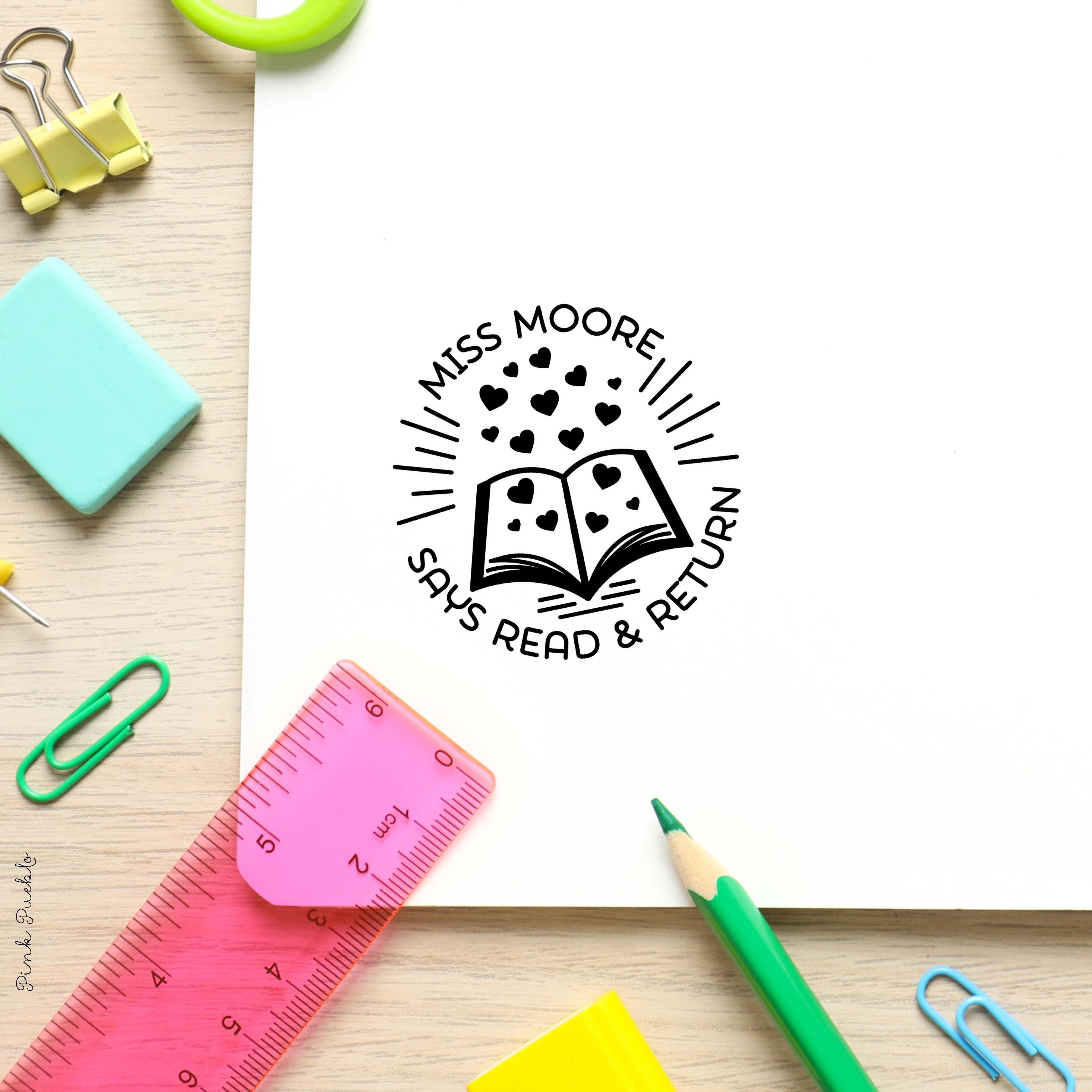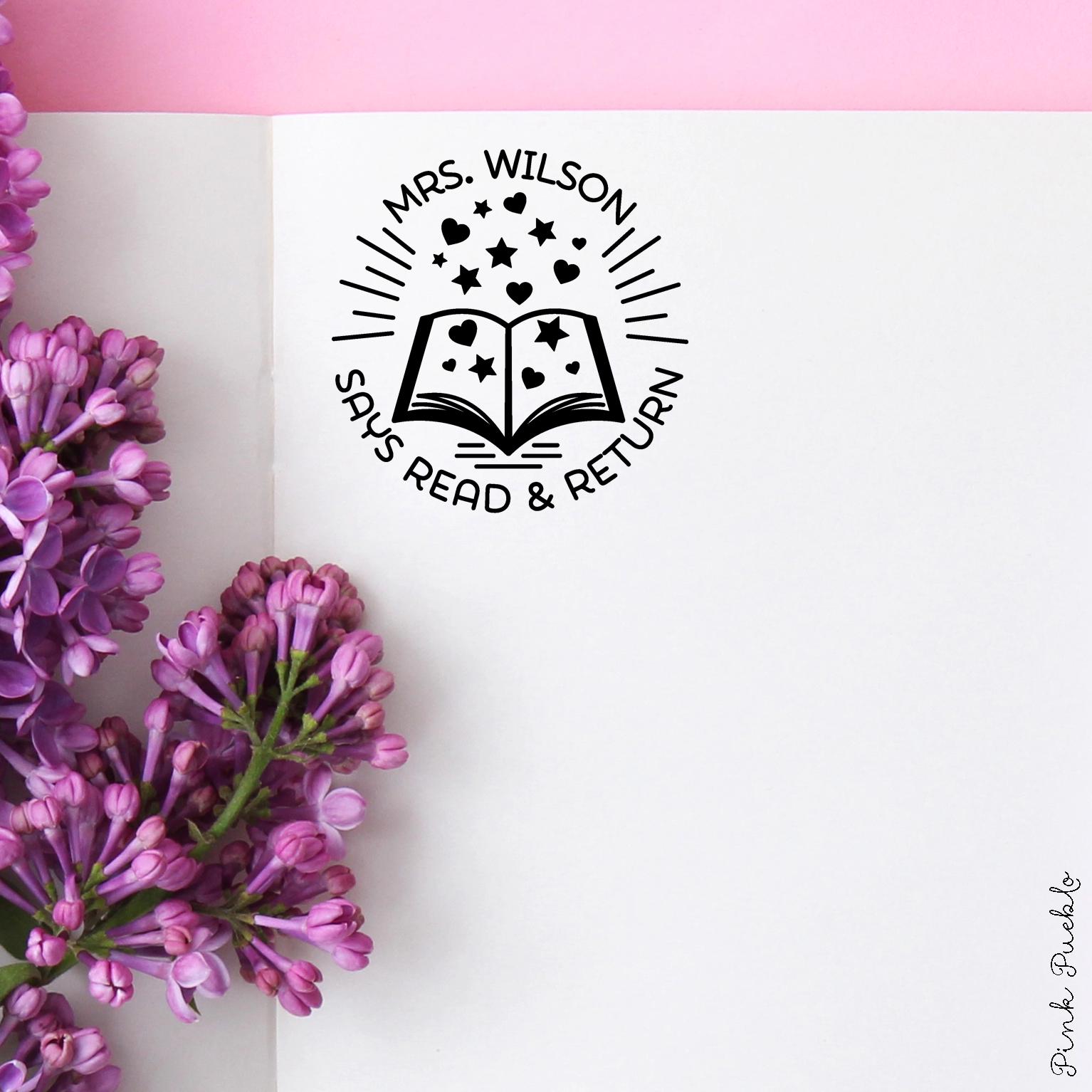 Make your mark with this Self Inking Teacher Book Stamp, perfect for labeling classroom libraries, lending shelves, or personal collections. This personalized stamp features the phrase From the Library Of, and you can customize the name to make it truly unique. A thoughtful option for teacher gifts, especially for back to school, teacher appreciation, or end of the year celebrations. This library stamp is practical, fun, and a great way for teachers to keep track of their favorite reads. The stamp art is original art by Devon (that's me!) at the studio of Pink Pueblo. All stamps are hand made and hand packaged in my studio prior to shipment.