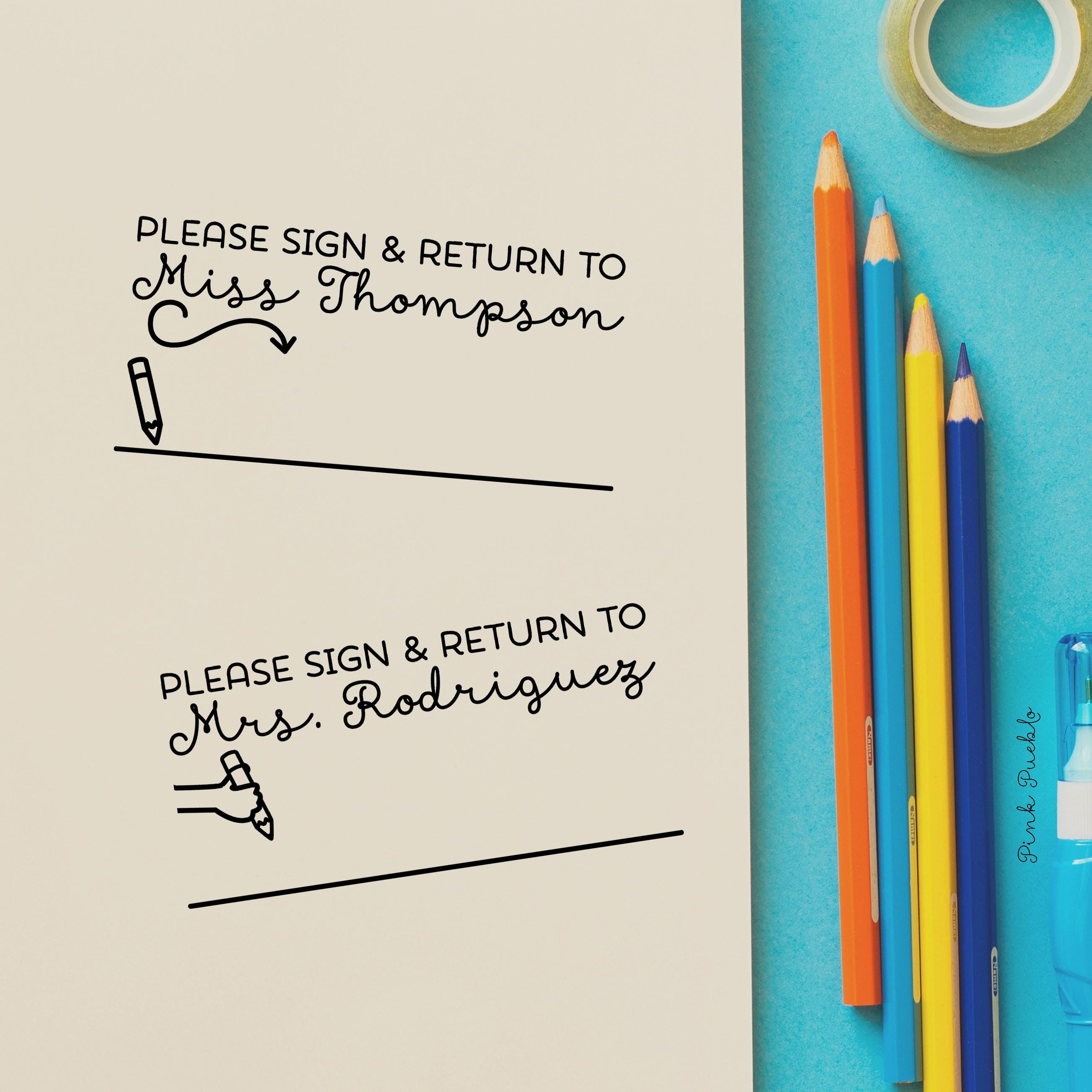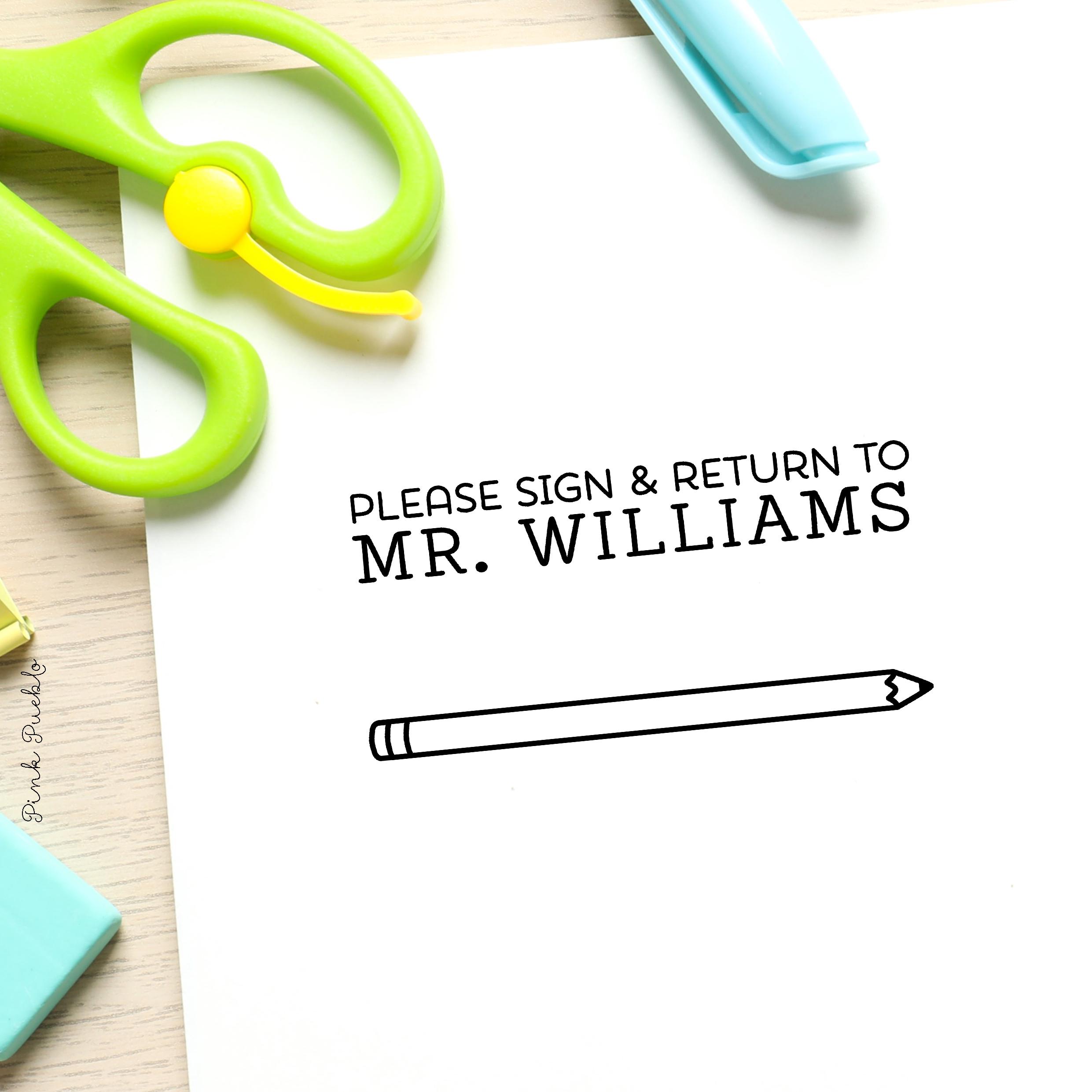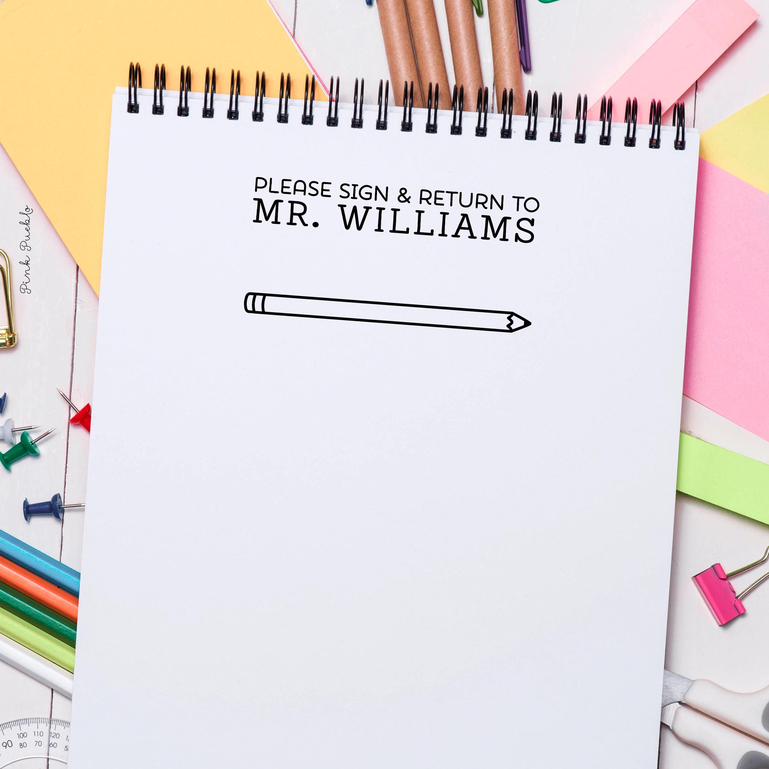 Pink Pueblo’s self inking stamp adds a fun, friendly touch to everyday classroom paperwork, making it easy for teachers and school counselor offices to ask parents to sign papers, forms, and permission slips. A favorite for teacher gifts, teacher appreciation, and back to school, this custom stamp brings personality to school supplies and a teacher planner. Each of our personalized stamps is made as a cheerful signature stamp, with four design options to choose from, creating a useful and feel-good personalized gift or thank you gift for educators, from kindergarten classrooms to counseling offices. The stamp art is original art by Devon (that's me!) at the studio of Pink Pueblo. All stamps are hand made and hand packaged in my studio prior to shipment.