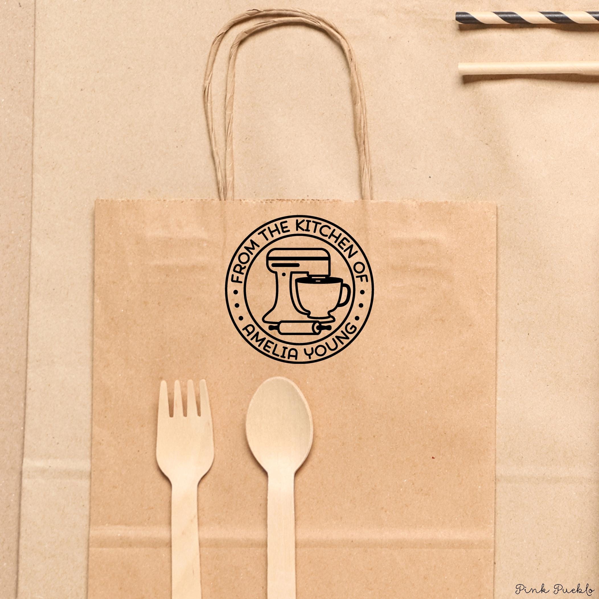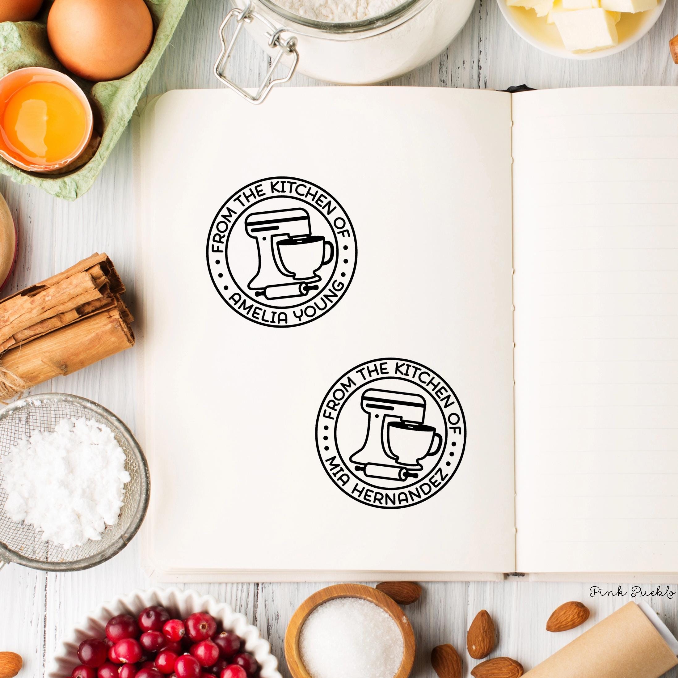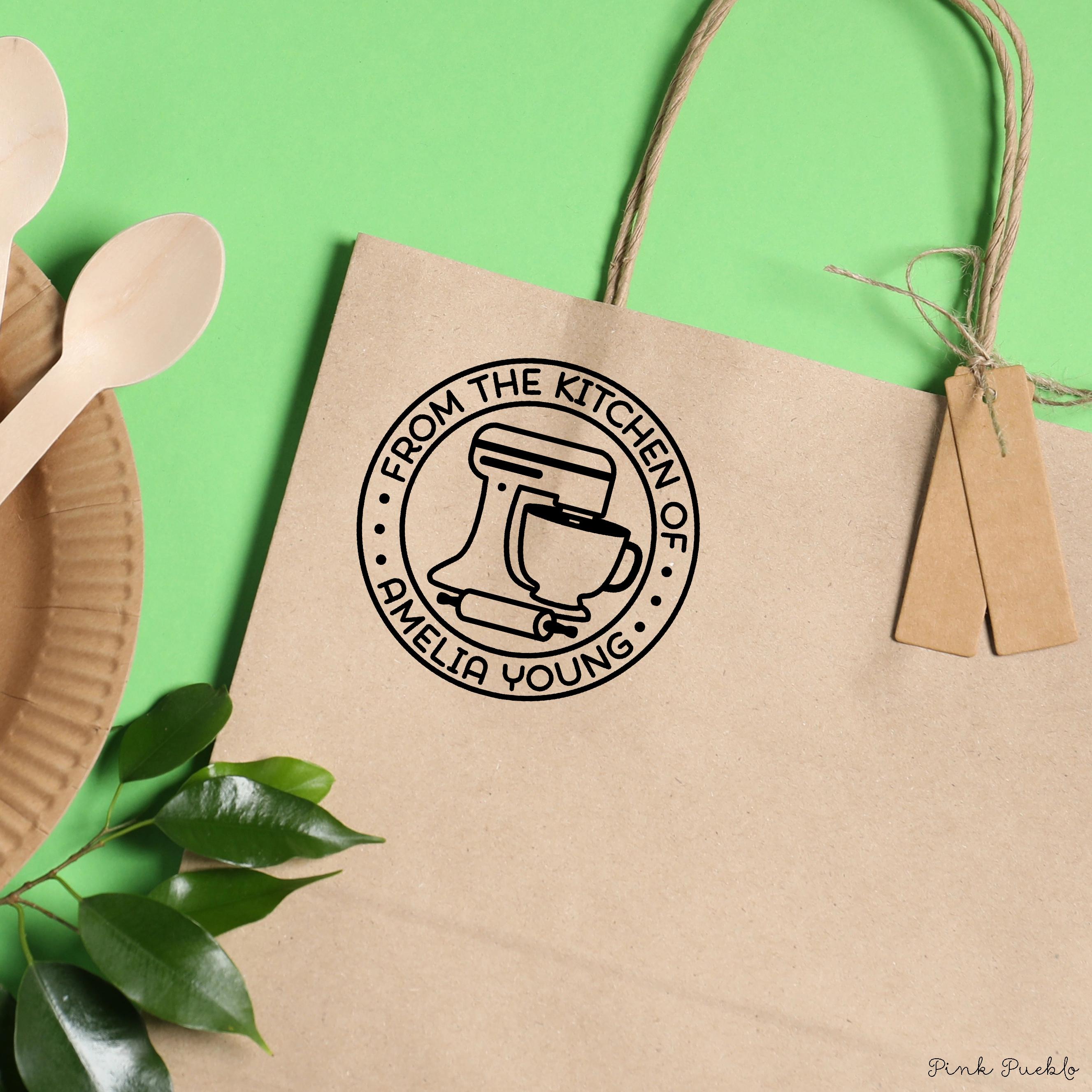 Add a personal touch to your homemade treats with this self inking stamp, perfect for labeling gift tags, recipe cards, and packaging for baked goods. This custom business stamp works beautifully as a logo stamp or for creating custom labels for your kitchen creations. A fun and thoughtful option for baking gifts, food lover gift, birthday gift, or even a hostess gift, this personalized stamp lets you customize the wording to match your style—whether it’s “From the Kitchen Of” or your own unique message. Great for everyday use or as a gift for her who loves to cook and share. The stamp art is original art by Devon (that's me!) at the studio of Pink Pueblo. All stamps are hand made and hand packaged in my studio prior to shipment.