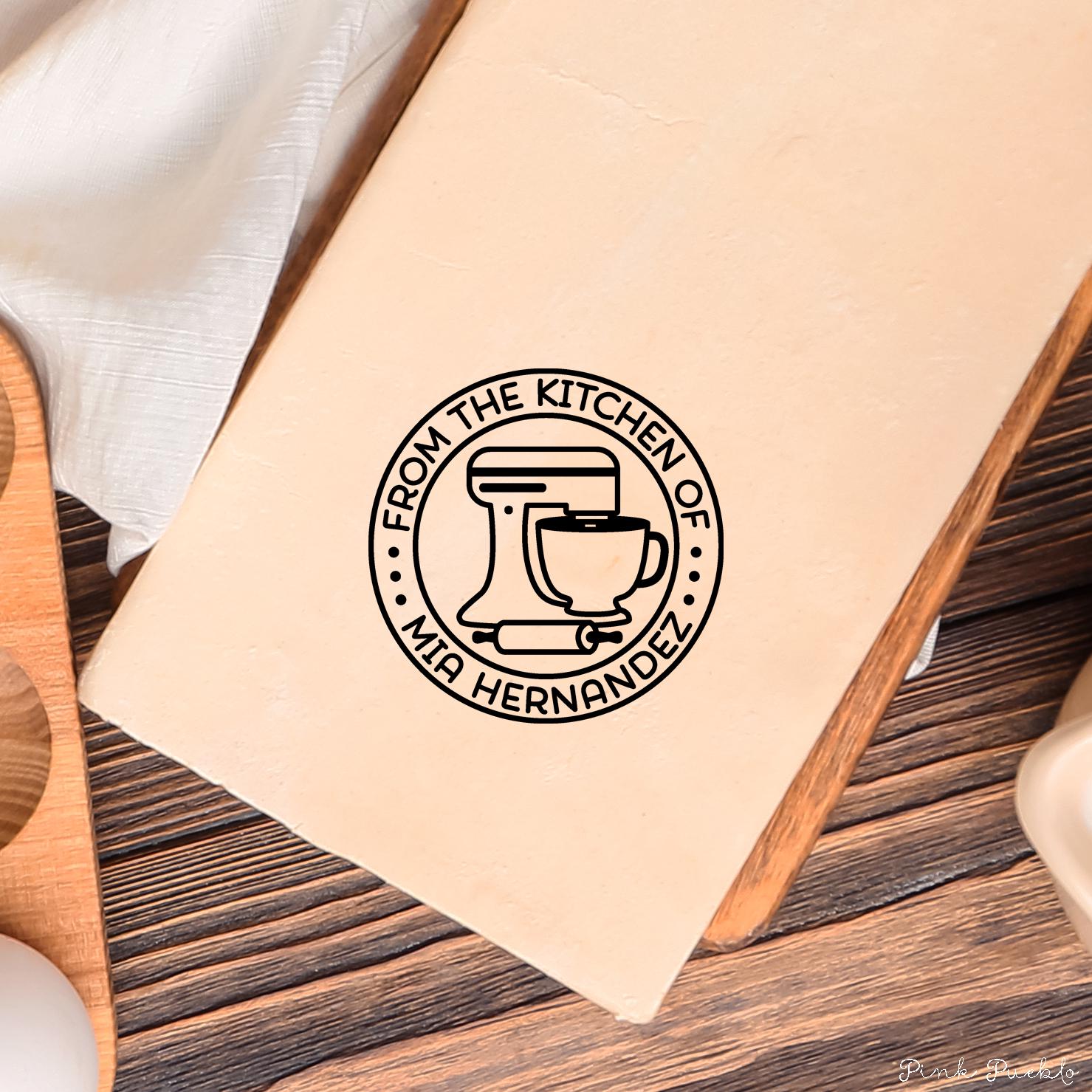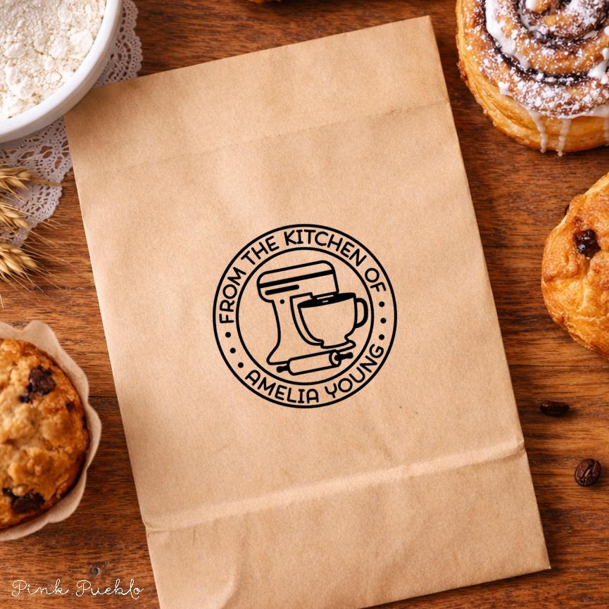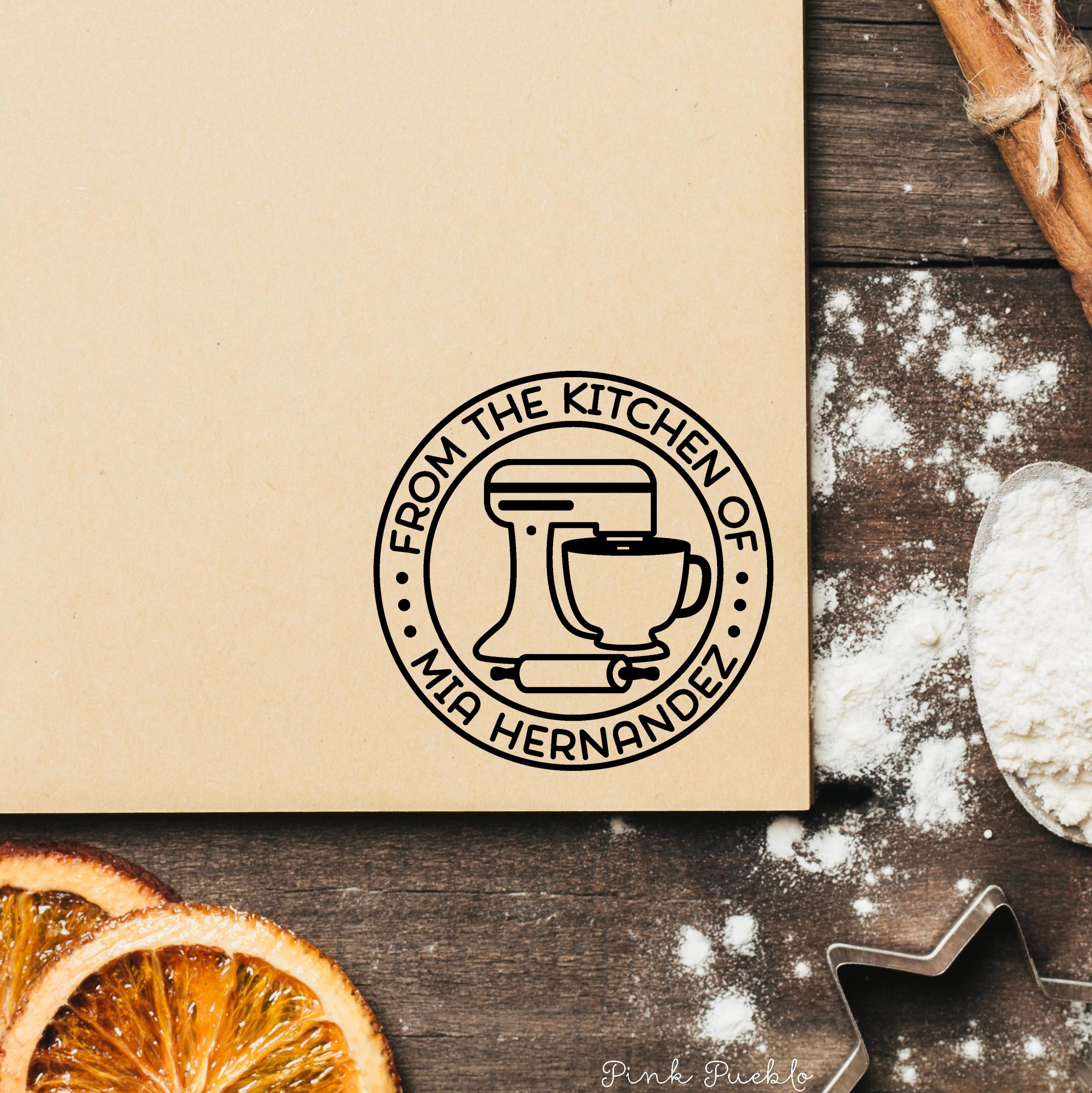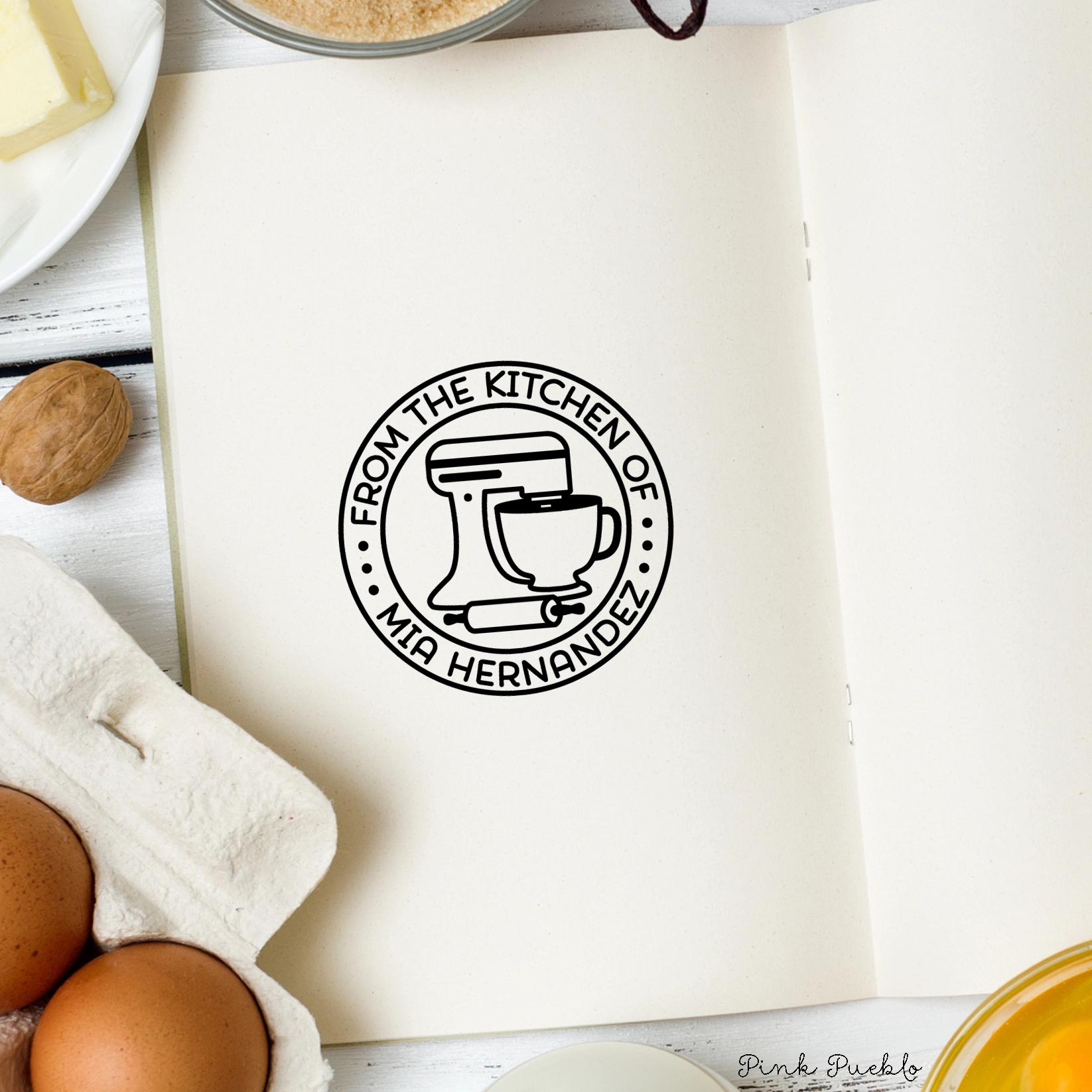 Add a personal touch to your homemade treats with this self inking stamp, perfect for labeling gift tags, recipe cards, and packaging for baked goods. This custom business stamp works beautifully as a logo stamp or for creating custom labels for your kitchen creations. A fun and thoughtful option for baking gifts, food lover gift, birthday gift, or even a hostess gift, this personalized stamp lets you customize the wording to match your style—whether it’s “From the Kitchen Of” or your own unique message. Great for everyday use or as a gift for her who loves to cook and share. The stamp art is original art by Devon (that's me!) at the studio of Pink Pueblo. All stamps are hand made and hand packaged in my studio prior to shipment.