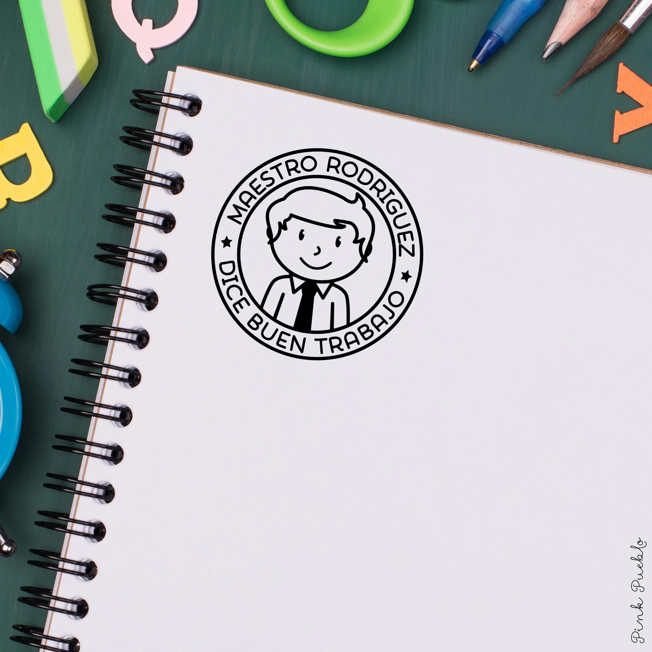 Celebrate your favorite Spanish teacher with this personalized custom stamp that adds a fun, engaging touch to everyday classroom moments. Designed to motivate students and simplify grading, this rubber stamp lets you customize the teacher’s name, hairstyle, and accessories for a truly one-of-a-kind tool. Perfect for teacher appreciation, back to school, or the last day of school, it also doubles as a creative addition to classroom decor and everyday school supplies. This thoughtful Spanish teacher gift fits right in with your go-to teacher gifts, whether you’re looking for thank you gifts, a back to school gift, or even a unique fathers day gift for an educator who makes learning memorable. Our mini self-inking stamps are lightweight, pocket-sized and fold to close. The stamp art is original art by Devon (that's me!) at the studio of Pink Pueblo. All stamps are hand made and hand packaged in my studio prior to shipment.
